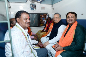 At Durg station, the pilgrims were welcomed and flagged off to Ayodhya Dham by Durg MLA Gajendra Yadav, Durg Rural MLA Lalit Chandrakar, Ahiwara MLA Doman Korsewada, Mayor of Durg Mrs. Alka Baghmar, President of Durg Zila Panchayat Mrs. Saraswati Banjare, BJP District President Durg Surendra Kaushik, Commissioner of Durg Division Shri Satyanarayan Rathore, Durg Collector Shri Abhijeet Singh, Commissioner of Durg Municipal Corporation Shri Sumit Agrawal, and Chief Executive Officer of Durg Shri Bajrang Dubey.