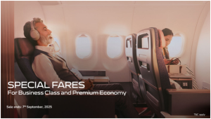 Under the sale, all-inclusive Premium Economy round-trip fares start from INR 13,300, and round-trip Business Class fares start from INR 34,400.