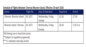 AVIATION: IndiGo ANNOUNCES NON-STOP CONNECTIVITY BETWEEN CHENNAI AND RÉUNION ISLAND FROM 29 APRIL 2026