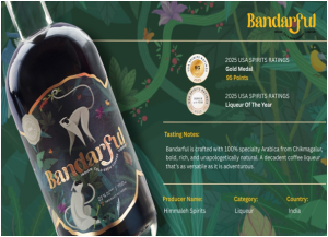 Bandarful, the artisanal cold-brew coffee liqueur from Himmaleh Spirits, has been awarded a Gold Medal and declared the World’s Best Liqueur at the 2025 USA Spirits Ratings. The prestigious competition, judged in San Francisco by leading U.S. industry leaders & trade buyers, evaluates spirits on quality, value, and packaging — with gold medals reserved for entries scoring between 90 and 95 points.