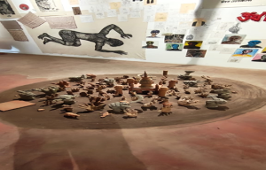 The artworks by the Panjeri Union are exhibited at the Coir Godown at Fort Kochi’s Aspinwall House. This four-year-old art collective, with its origin in Banipur not far from Kolkata, comprises 14 artists drawn from diverse fields including visual art, design, literature, cinema, photography and music.