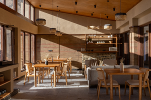 Designed by Windows to Vernacular, the architecture responds directly to altitude and climate through rammed-earth walls, local stone, passive solar gain and high-performance insulation that reduce dependence on external energy. A butterfly roof harvests snowmelt for reuse, while topsoil preserved during construction was returned to the land to keep it productive. Built for seismic resilience and minimal ecological disturbance, the project demonstrates how comfort in remote landscapes can be achieved through performance and restraint rather than excess.