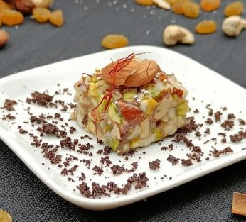 BY CHEF LOKENDRA SINGH, CROWNE PLAZA, CITY CENTRE , PUNE Name Of The Preparation: DRY FRUIT BARFI Sl.No. Ingredients Qty Grms 1 Cashew nuts 8 gm 2 Pista 8gm 3 ghee 0.05 gm 4 cardamon powder 1gm 5 Almond 0.05 gm 6 liquid glucose 10gm 7 silver bolls 2nos 8 honey 10gm 9 saffron 1gm METHOD 1...