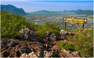 A scenic drive from the town centre deposited me atSam Roi Yot National Park, some 63 kilometres south ofHua Hin. The park’s 98 square kilometres of undulatingranges of limestone mountains, mangrove swamps andbeaches, are home to local and migratory birds, and a‘fishing and prawns culture centre’, and a fishermen’svillage. Standing as a landmark for seamen and alsoproviding shelter for ships during a storm, is Khao SamRoi Yot (the mountain of 300 peaks).